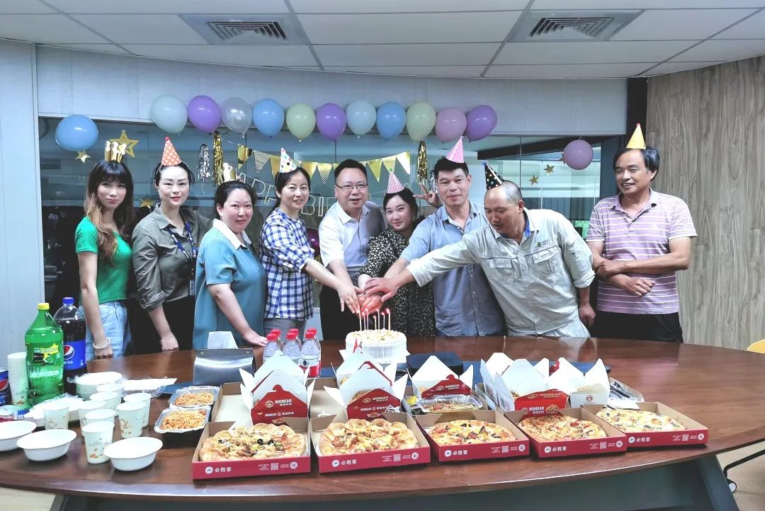 6月23日中午,燎申智城·南部科創(chuàng)產(chǎn)業(yè)園上半年度員工生日會如期而至,總經(jīng)理陳綱出席生日會,與大家共慶美好生辰。伴隨著歡快的生日祝福歌和躍動的燭光,壽星們在生日蛋糕前許下對未來的期許與心愿,共同分享充滿溫暖與愛意的生日蛋糕。燎申智城將繼續(xù)打造一個友愛團結(jié)、有凝聚力的團隊,共創(chuàng)燎申的美好未來。