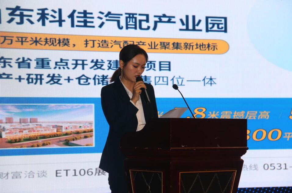 山東科佳智能裝備城總監(jiān)許婧做了項(xiàng)目推薦。山東科佳智能裝備城是濟(jì)南市重點(diǎn)項(xiàng)目、山東省重大項(xiàng)目,是先進(jìn)汽配產(chǎn)業(yè)集群園區(qū)、北方重要的汽配產(chǎn)業(yè)聚集地,建設(shè)完成后將成為國(guó)內(nèi)定位最高、規(guī)模最大、產(chǎn)業(yè)鏈最長(zhǎng)、服務(wù)職能最全的現(xiàn)代化汽配產(chǎn)業(yè)園區(qū)。