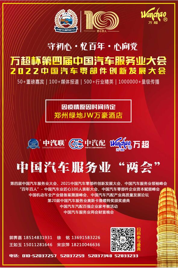 不忘初心,牢記使命。為貫徹落實(shí)國務(wù)院辦公廳關(guān)于服務(wù)“六穩(wěn)”“六保”進(jìn)一步做好“放管服”改革有關(guān)工作的意見(國辦發(fā)〔2021〕10號(hào))精神,立足新發(fā)展階段、貫徹新發(fā)展理念、構(gòu)建新發(fā)展格局,深入實(shí)施創(chuàng)新驅(qū)動(dòng)發(fā)展戰(zhàn)略,推動(dòng)汽車產(chǎn)業(yè)高質(zhì)量發(fā)展,中汽聯(lián)擬在有關(guān)部門支持下,由國家汽車零部件產(chǎn)品質(zhì)量監(jiān)督檢驗(yàn)中心、中國汽車工業(yè)配件銷售有限公司、中國車后市場(chǎng)研究院有限公司、中國維改交通信息管理中心、中汽環(huán)球汽配用品檢測(cè)認(rèn)證中心、上海萬超汽車天窗有限公司等機(jī)構(gòu)主辦的以“守初心、憶百年、心向黨”為主題的“萬超杯”第四屆中國汽車服務(wù)業(yè)大會(huì)、2021中國汽車零部件創(chuàng)新發(fā)展大會(huì)(簡稱:2021“萬超杯”中國汽車服務(wù)業(yè)“兩會(huì)”)因疫情原因?qū)⒀悠谠卩嵵菥G地JW萬豪酒店舉行(俗稱的“大玉米”、“玉米棒”,高280米共60層,被譽(yù)為華中第一高樓,鄭州地標(biāo)性建筑之一),敬請(qǐng)您在百忙中出席。