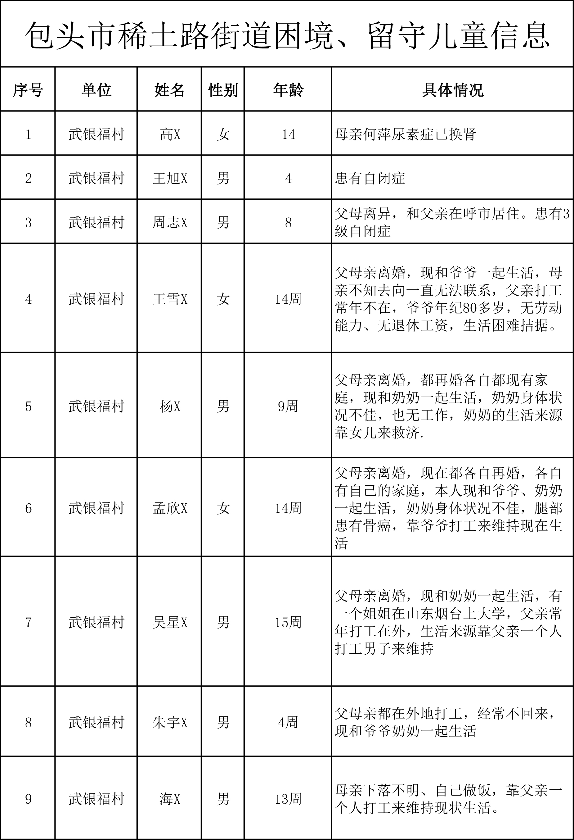 以上特困兒童信息由包頭市婦聯(lián)提供。