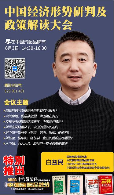 2022年6月3日,“2022 福斯途杯 中國汽配企業(yè)品牌秀”的第五場活動,由 中國(陽谷)車品小鎮(zhèn) 特約冠名播出的2022中國經(jīng)濟(jì)形勢研判及政策解讀大會在線上成功舉行,中汽聯(lián)智庫首席戰(zhàn)略專家、中國戰(zhàn)略經(jīng)濟(jì)學(xué)家、中國產(chǎn)業(yè)經(jīng)濟(jì)學(xué)家、國際商戰(zhàn)情報專家白益民 出席中國經(jīng)濟(jì)形勢研判及政策解讀大會并做了精彩分享,引起了社會的廣泛關(guān)注,點贊數(shù)量達(dá)到64萬個。2022中國經(jīng)濟(jì)形勢研判及政策解讀大會由中汽聯(lián)執(zhí)行會長、中汽協(xié)汽車技術(shù)研究院院長喬永鋒主持。