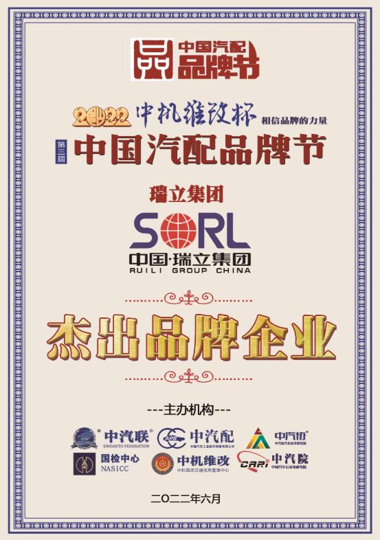 瑞立榮膺2022中國汽配行業(yè)兩項品牌大獎!