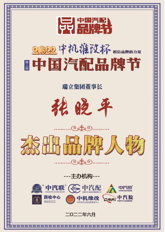 據(jù)《2022中國汽配品牌榜》榜單顯示:瑞立集團董事長張曉平榮膺“2022中國汽配行業(yè)杰出品牌人物”、瑞立榮膺“中國汽配行業(yè)杰出品牌企業(yè)”兩項大獎。瑞立集團創(chuàng)辦于1987年,旗下現(xiàn)有全資、控股、參股企業(yè)20余家,產(chǎn)業(yè)跨越制造業(yè)、服務業(yè)。集團二產(chǎn)板塊主要從事汽車零部件、軌道車輛零部件的研發(fā)、制造和銷售。瑞立制造的軌道交通零部件在高鐵、動車、城軌、地鐵上廣泛應用。北京奧運會、上海世博會上,都有瑞立產(chǎn)品的身影。瑞立先后被命名為中國汽車零部件百強企業(yè)、國家汽車零部件出口基地企業(yè)、國家火炬計劃重點高新技術企業(yè)、國家知識產(chǎn)權(quán)示范企業(yè)、中國民營企業(yè)500強、浙江省制造業(yè)百強、浙江省工業(yè)行業(yè)龍頭骨干企業(yè)、浙江省創(chuàng)新型領軍企業(yè)、浙江省高端裝備制造業(yè)骨干企業(yè)、浙江省“三名”培養(yǎng)試點企業(yè)、浙江省“重才愛才”先進單位。瑞立在“思路決定出路、戰(zhàn)略成就未來、細節(jié)決定成敗”的發(fā)展理念指引下,形成了“一業(yè)為主、適度多元經(jīng)營,多元投資、專業(yè)管理”格局,現(xiàn)已發(fā)展成為主營汽配,兼跨房地產(chǎn)、酒店服務、商業(yè)、貿(mào)易、文教等為一體的無區(qū)域企業(yè)集團。