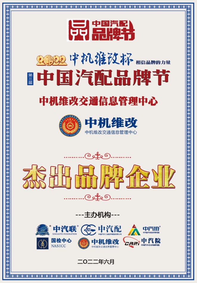 2022中國汽配行業(yè)杰出品牌企業(yè)