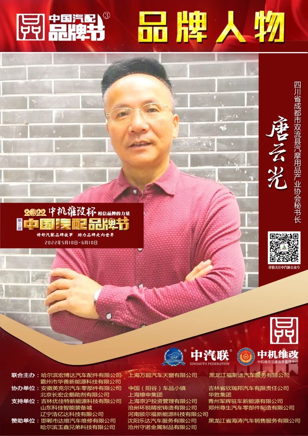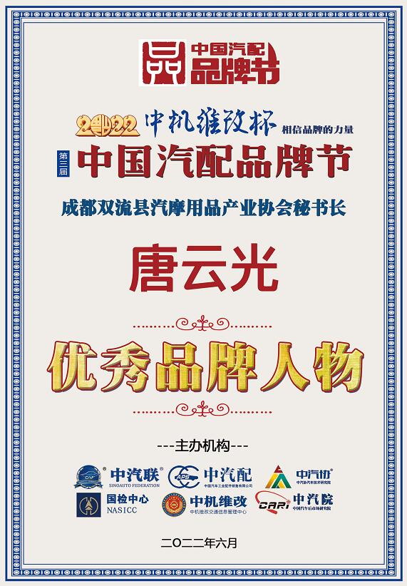 據(jù)《2022中國汽配品牌榜》榜單顯示:成都雙流縣汽摩用品產(chǎn)業(yè)協(xié)會秘書長唐云光榮膺“2022中國汽配行業(yè)優(yōu)秀品牌人物”大獎。