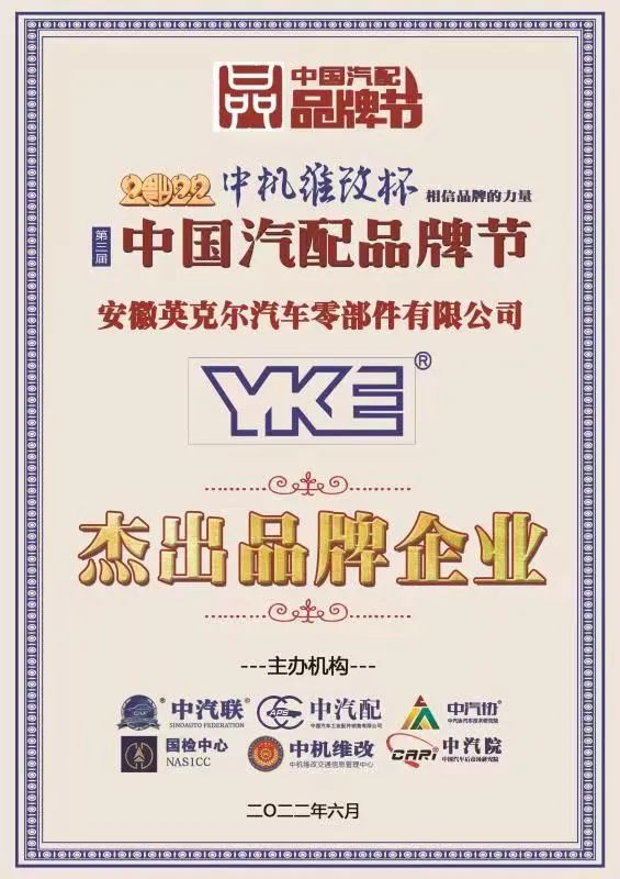 安徽英克爾榮膺2022中國汽配行業(yè)兩項品牌大獎!