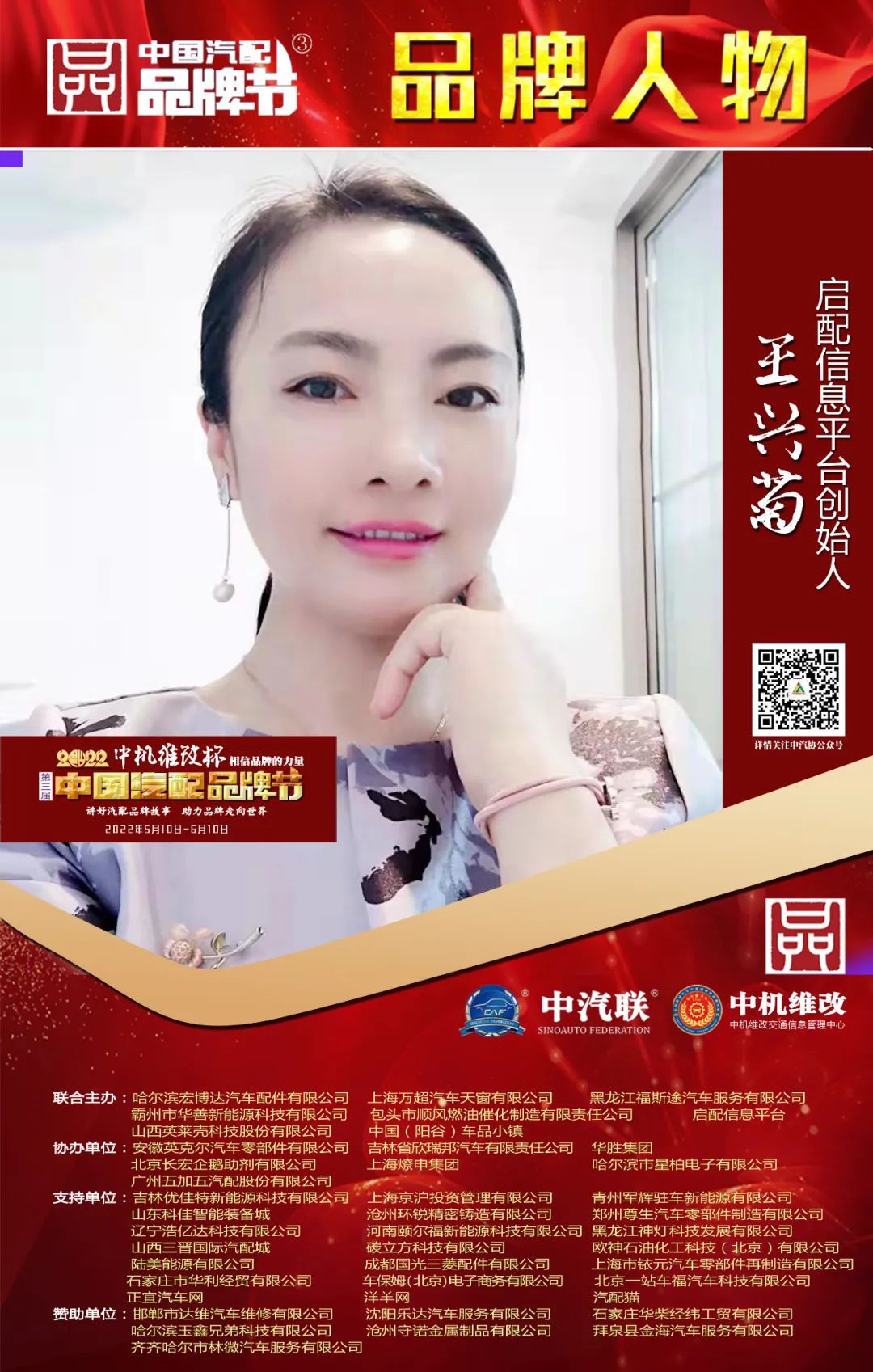 據(jù)《2022中國(guó)汽配品牌榜》榜單顯示:?jiǎn)⑴湫畔⑵脚_(tái)創(chuàng)始人王興菊榮膺“2022中國(guó)汽配行業(yè)杰出品牌人物”、啟配榮膺“2022中國(guó)汽配行業(yè)推薦新銳品牌”兩項(xiàng)大獎(jiǎng)。