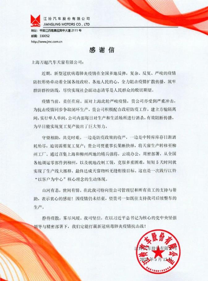 2022年6月22日上午9:30,上海市嘉定區(qū)政協(xié)副主席徐鋒一行蒞臨上海萬超汽車天窗有限公司考察調(diào)研,對企業(yè)在復工復產(chǎn)后,和疫情期間所面臨的各項工作難點進行調(diào)研,中汽聯(lián)主席、上海萬超汽車天窗有限公司董事長賈公棋親自對嘉定區(qū)政協(xié)領導的來訪表示熱烈的歡迎。