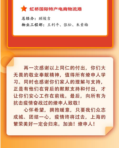 在這場全民戰(zhàn)疫中,還有許許多多的燎申人,舍小家為大家,毅然留守在各項目疫情防控第一線,夜以繼日、持續(xù)作戰(zhàn),悉心守護客戶的生命安全,為所在項目的疫情防控工作做出了重要貢獻,是燎申疫情防控阻擊戰(zhàn)中最美的逆行者。