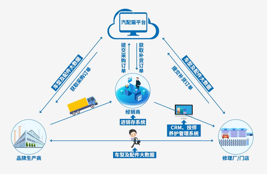 汽配貓B2b汽配電商交易服務(wù)平臺,在線上實(shí)現(xiàn)了信息流、交易流和資金流三流合一,同時搭建屬于服務(wù)商定制化、屬地化的B2b汽配電商交易服務(wù)平臺,讓城市服務(wù)商可實(shí)現(xiàn)拎包入住,線上系統(tǒng)還有“智能機(jī)器人查詢系統(tǒng)”,“技師掃碼積分、電子質(zhì)保單和學(xué)習(xí)系統(tǒng)”,“配件商ERP系統(tǒng)“,維修門店SAAS管理系統(tǒng)”,“配件商鋪貨云倉管理系統(tǒng)”,“配件商專屬交易平臺系統(tǒng)”等。