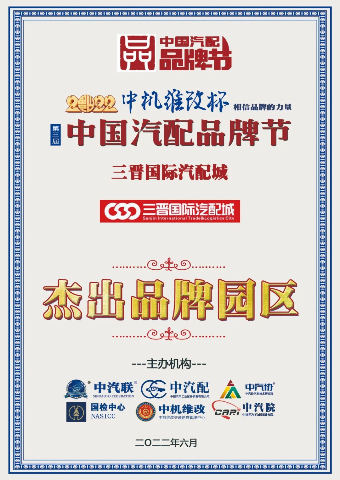 據(jù)《2022中國汽配品牌榜》榜單顯示:三晉國際汽配城榮膺“2022中國汽配杰出品牌園區(qū)”大獎(jiǎng)。