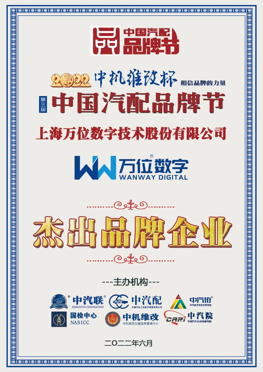 據(jù)《2022中國(guó)汽配品牌榜》榜單顯示:上海萬位數(shù)字技術(shù)股份有限公司榮膺“2022中國(guó)汽配杰出品牌企業(yè)”大獎(jiǎng)。