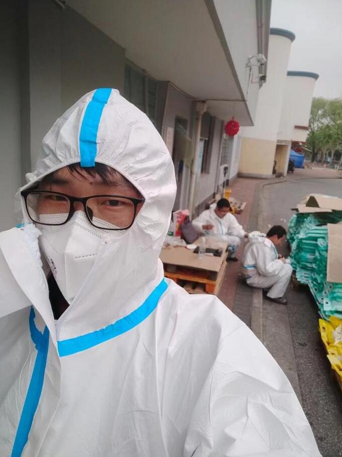 (跨越速運閔行金都點部跨越小哥疫情下工作照)