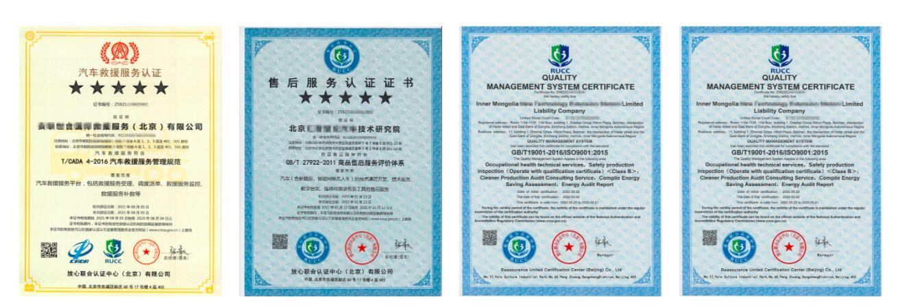 目前已經(jīng)具備質(zhì)量、環(huán)境、職業(yè)健康安全、汽車救援服務(wù)認(rèn)證、企業(yè)誠信認(rèn)證等多體系認(rèn)證資質(zhì)和能力