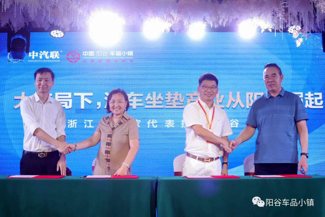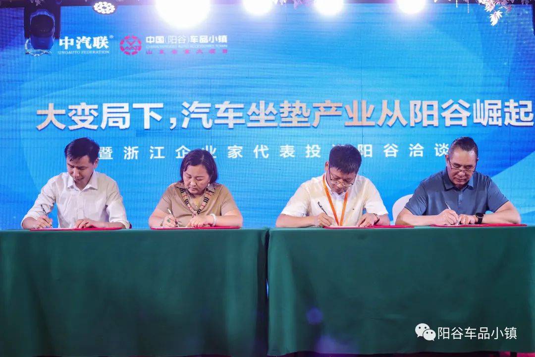 6月29日下午,“大變局下,汽車坐墊產(chǎn)業(yè)從陽谷崛起暨浙江企業(yè)家代表投資陽谷洽談會”在陽谷獅子樓大酒店隆重召開。來自浙江的應(yīng)天汽車內(nèi)飾設(shè)計有限公司董事長 張衡、杭州車酷網(wǎng)絡(luò)科技有限公司董事長 張興武、磬程科技董事長 徐忠培、寧波山泰紡織品有限公司總經(jīng)理 施裕鋒、浙江致豐布藝總經(jīng)理 楊海洋等八位企業(yè)家與經(jīng)濟開發(fā)區(qū)黨委書記、管委會主任盧加廣、安樂鎮(zhèn)黨委書記王太敬、中國銀行陽谷支行行長 張勇和招商局、陽谷縣民營經(jīng)濟發(fā)展服務(wù)中心 、安樂鎮(zhèn)領(lǐng)導(dǎo);陽谷汽車用品行業(yè)協(xié)會會長 張平;陽谷車品小鎮(zhèn)發(fā)展有限公司董事局主席 蔣克林、董事局副主席張洪、公司總裁 吳志平及陽谷汽車用品行業(yè)廠家代表近100人參會,共同見證這一榮耀時刻。投資洽談會由安樂鎮(zhèn)常務(wù)副鎮(zhèn)長孫希洋主持。