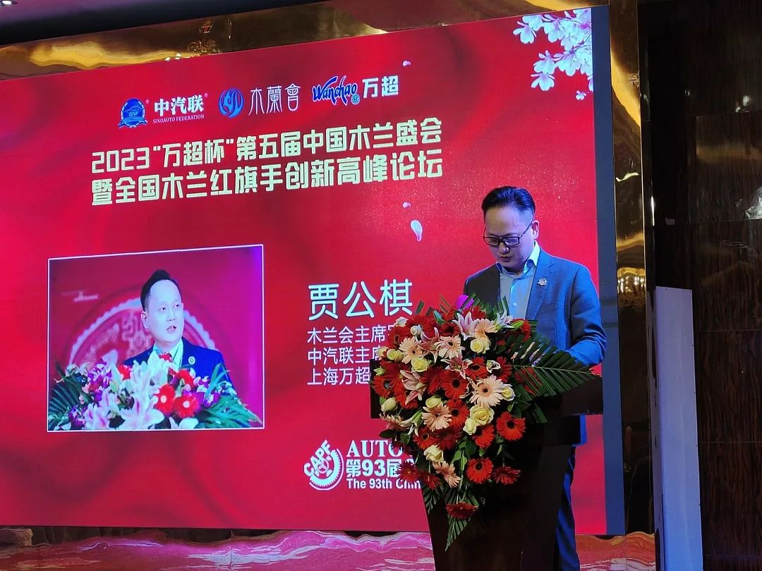 中汽聯(lián)主席、木蘭會(huì)主席團(tuán)主席、上海萬(wàn)超汽車(chē)天窗有限公司董事長(zhǎng)賈公棋宣讀2023萬(wàn)超杯《中國(guó)汽車(chē)業(yè)木蘭宣言》