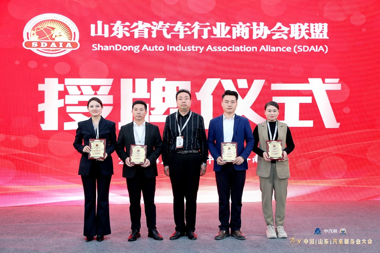 山東省汽車行業(yè)商協(xié)會聯(lián)盟主席倪付慶為副主席兼秘書長許世婧、副秘書長劉翰洋、副秘書長楊承浩、副秘書長梁曉梅頒發(fā)銅牌。