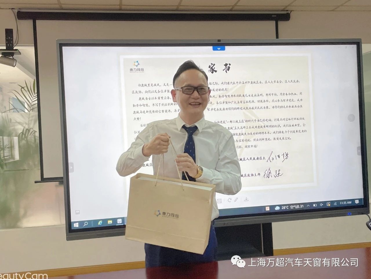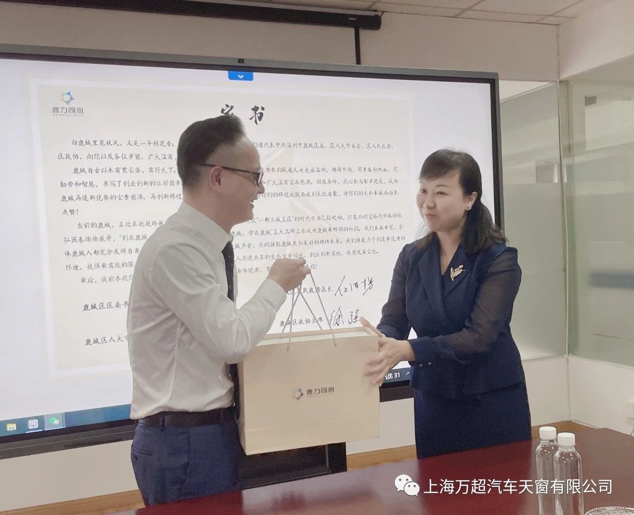 雙方在歡快愉悅的氣氛中互相交流和介紹后,有了更深一步的了解,在觀看完溫州鹿城區(qū)發(fā)展的視頻介紹后,賈董事長非常感嘆家鄉(xiāng)鹿城區(qū)發(fā)展迅速。