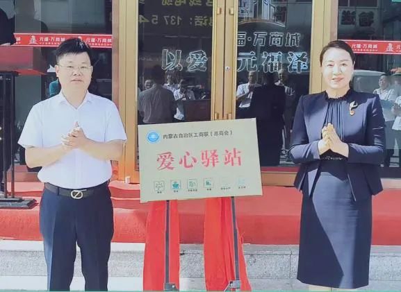 2023年8月31日,內(nèi)蒙古自治區(qū)工商聯(lián)(總商會)呼和浩特市首家“愛心驛站”(由內(nèi)蒙古商貿(mào)物流與服務(wù)業(yè)協(xié)會和內(nèi)蒙古汽車行業(yè)協(xié)會共同籌建)在元福·萬商城舉辦了揭牌儀式,自治區(qū)工商聯(lián)黨組成員、副主席白春艷出席揭牌儀式,并與協(xié)會會長謝友興共同為“愛心驛站”揭牌。