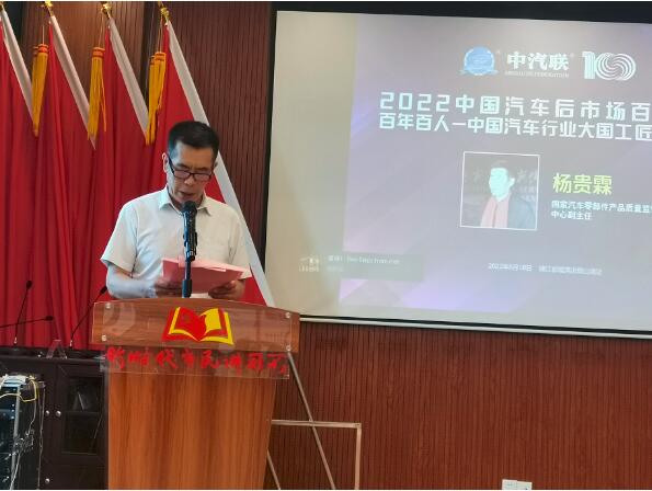 2022年8月18日,在全國汽車配件交易會組委會支持下,由中國汽車工業(yè)配件銷售有限公司、國家汽車零部件產(chǎn)品質量監(jiān)督檢驗中心、中國汽車后市場研究院、中機維改交通信息管理中心主辦,上海萬超汽車天窗有限公司、中汽聯(lián)科技集團有限公司、中國(陽谷)車品小鎮(zhèn)、貴州省汽車流通協(xié)會、貴陽市機動車流通行業(yè)商會聯(lián)合主辦,中汽協(xié)汽車技術研究院、中國汽車服務業(yè)大會組委會承辦的“2022年中國汽車后市場百人峰會暨百年百人-中國汽車行業(yè)大國工匠表彰大會”在貴陽市錦江都城酒店盛大舉行,來自全國各地汽車后市場的代表近200多人參會,會議由中汽聯(lián)秘書長郭霽嘉主持。