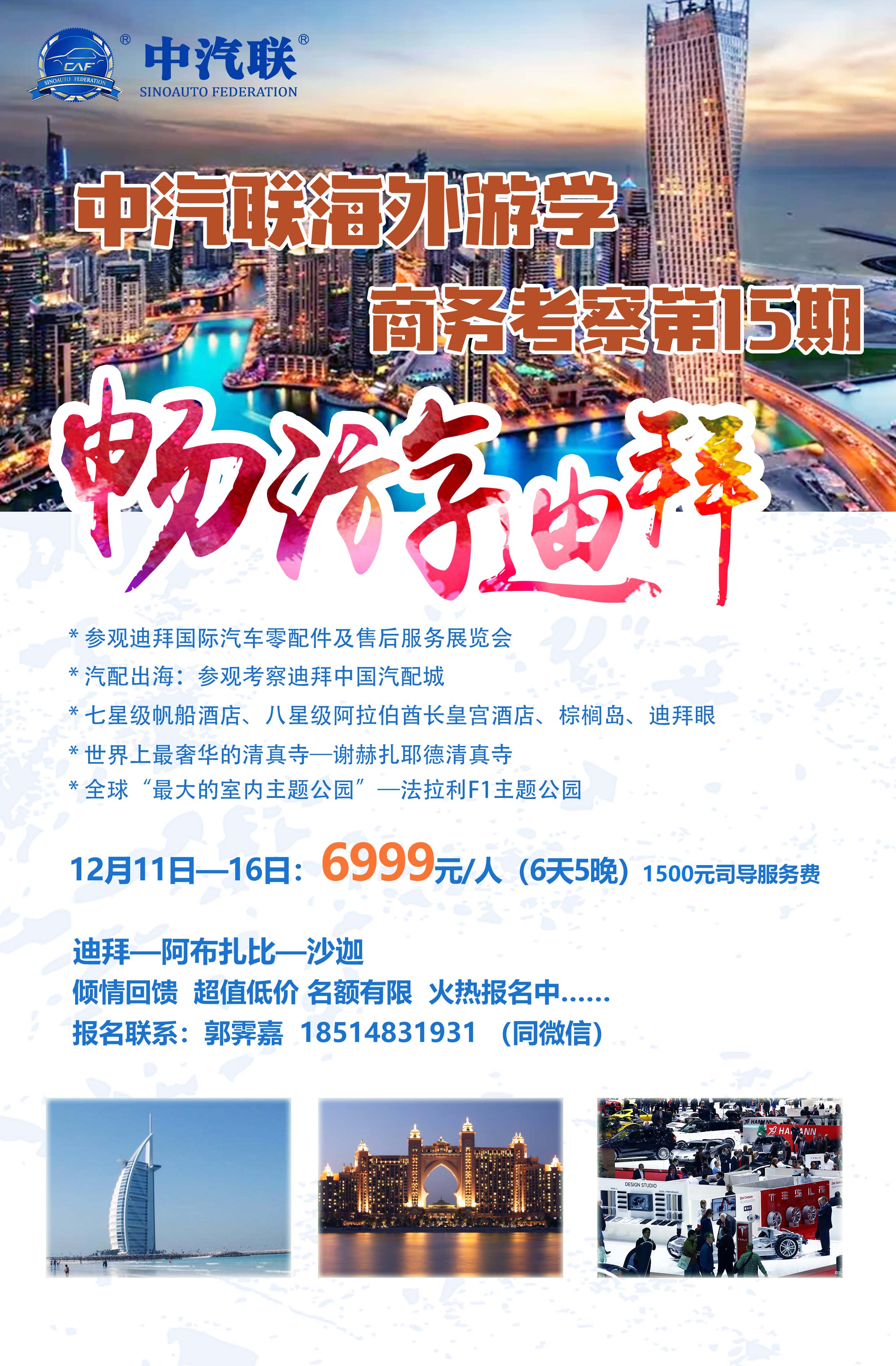 第15期 中汽聯(lián)(迪拜)海外游學(xué)商務(wù)考察活動(dòng)已全面啟動(dòng),即日起接受報(bào)名,名額有限,報(bào)滿為止,報(bào)名截止2024年11月20日。