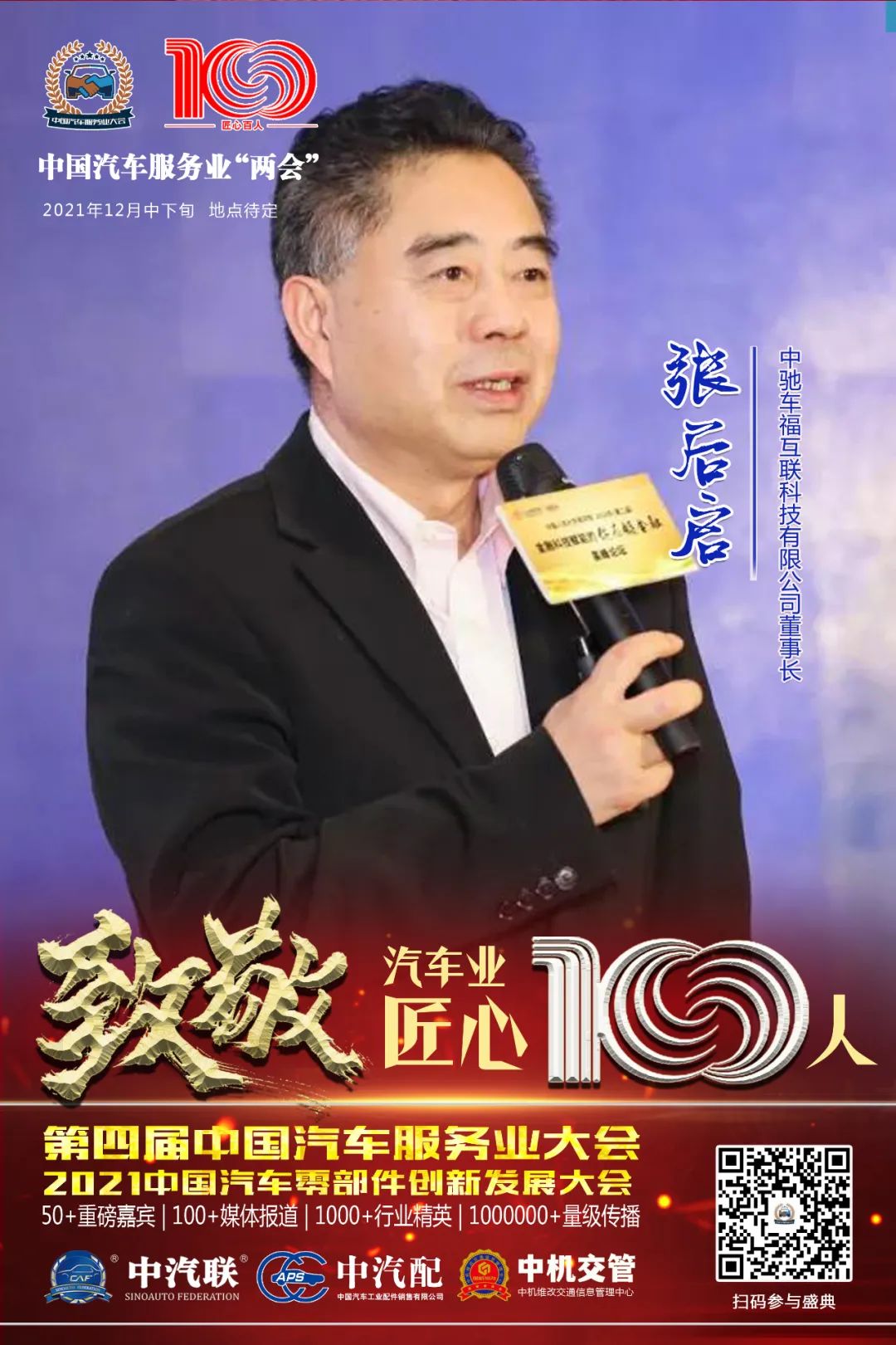據(jù)第四屆中國汽車服務(wù)業(yè)大會組委會介紹,全國工商聯(lián)汽車經(jīng)銷商商會副會長兼供應(yīng)鏈專業(yè)委員會會長、中汽聯(lián)主席團(tuán)主席、中馳車福董事長張后啟入選“百年百人”中國汽車業(yè)匠心100人。