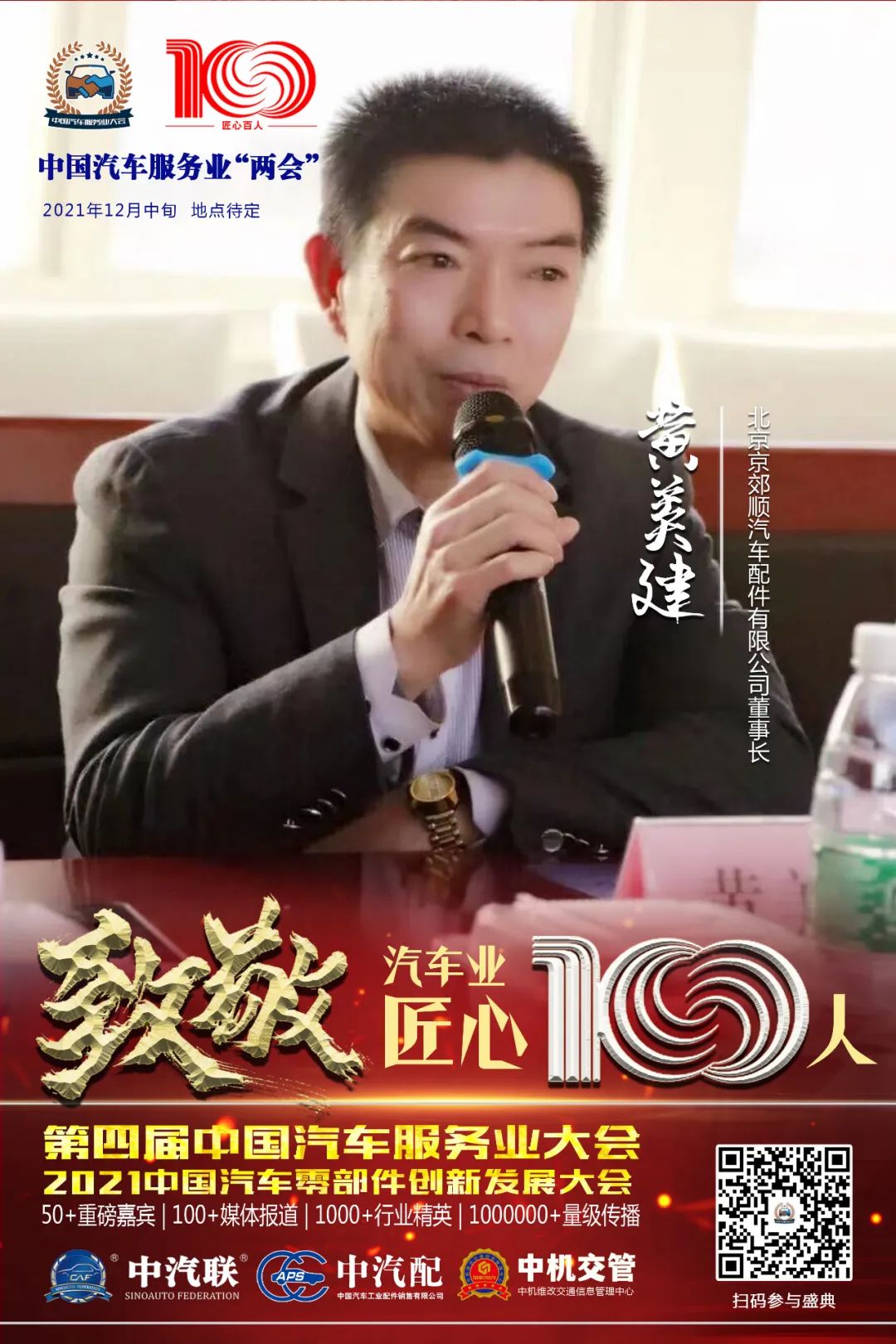 據(jù)第四屆中國汽車服務(wù)業(yè)大會組委會介紹,中汽聯(lián)常務(wù)副主席、北京京郊順汽車配件有限公司董事長黃美建入選“百年百人”中國汽車業(yè)匠心100人。