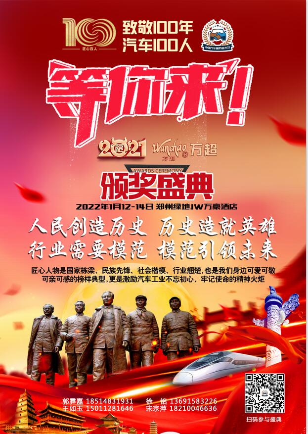 100年砥礪奮進(jìn),100年譜寫輝煌。2021年是我們偉大的中國共產(chǎn)黨成立100周年,今年我們也實現(xiàn)了第一個百年目標(biāo),在中華大地上全面建成了小康社會,在汽車行業(yè)中也涌現(xiàn)出了許多值得記錄的人物。站在新的歷史坐標(biāo),講述中國故事、勾勒前進(jìn)足跡,同享偉大榮光、同鑄復(fù)興偉業(yè),充分展示建黨100周年之際汽車行業(yè)取得的光輝歷程,展示汽車行業(yè)的偉大成就。中汽聯(lián)以“黨旗引領(lǐng) 匠心筑夢”為主題,在汽車行業(yè)開展“尋找100名匠心人物”活動,就是要向這些匠心人物致敬,向他們堅守的匠心精神致敬,向匠心精神的不斷傳承致敬。