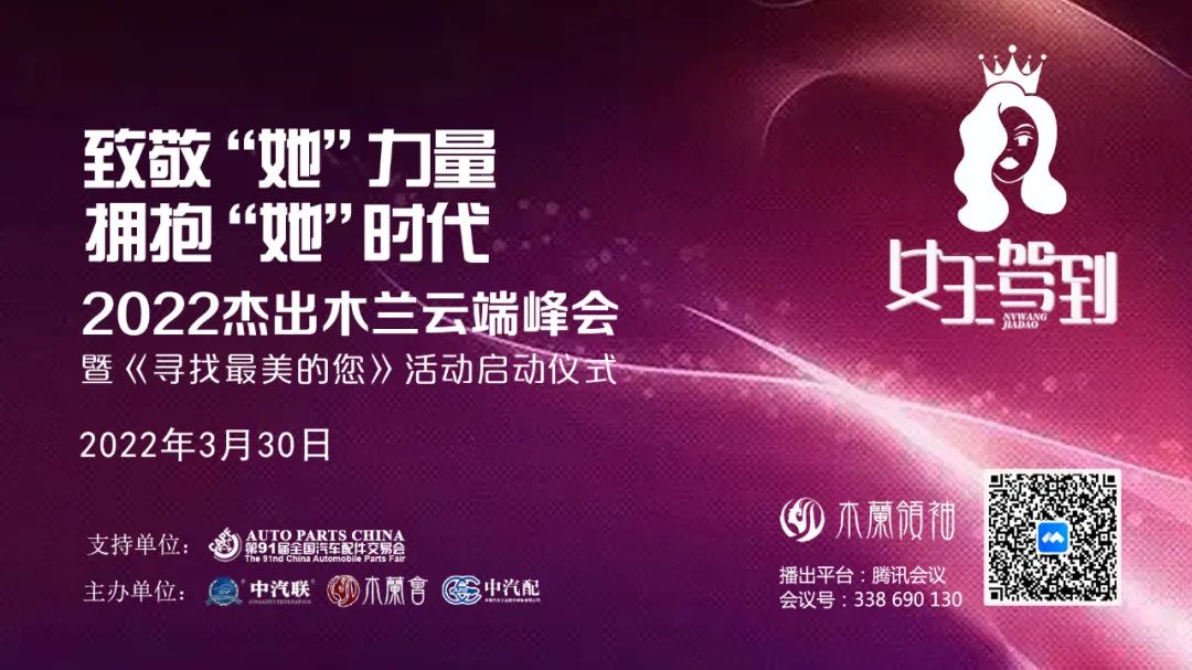 3月30日,讓我們相約2022杰出木蘭云端峰會暨《尋找最美的您》系列活動啟動儀式,讓我們向汽車行業(yè)熠熠閃耀光芒的新時代巾幗英雄致敬!