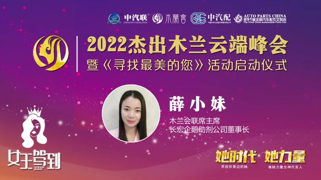 木蘭會(huì)聯(lián)席主席、中汽聯(lián)副主席、北京長(zhǎng)宏企鵝助劑有限公司董事長(zhǎng)薛小妹