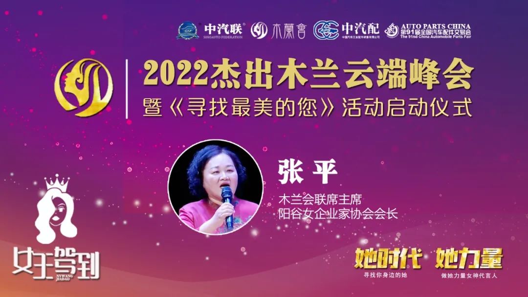 很榮幸參加2022杰出木蘭云端峰會暨《尋找最美的您》系列活動啟動儀式!我來自打虎英雄武松的故鄉(xiāng)——山東陽谷縣,我是陽谷車品創(chuàng)始人、陽谷縣女企業(yè)家協(xié)會會長、陽谷汽車用品行業(yè)協(xié)會會長張平!