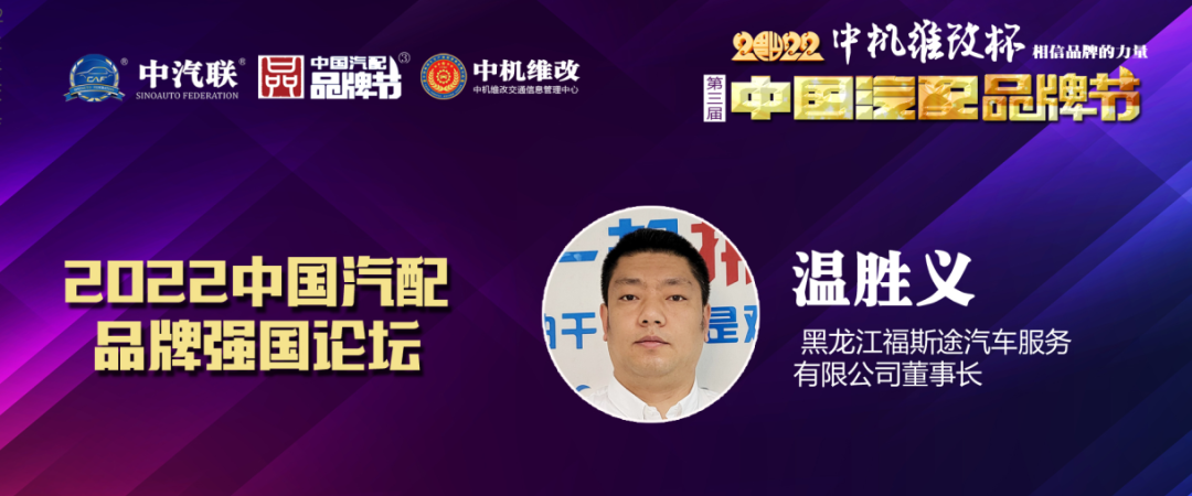 我是黑龍江福斯途汽車服務有限公司董事長 溫勝義, “第三屆中國汽配品牌節(jié)”的召開,對參與此次品牌節(jié)企業(yè)的品牌推廣和背書起到了關鍵性作用。
