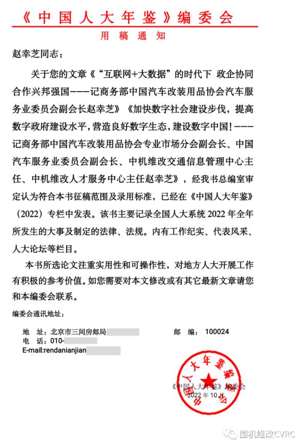 ——記商務(wù)部中國汽車改裝用品協(xié)會專業(yè)市場分會常務(wù)副會長、中國汽車服務(wù)業(yè)委員會副會長、中機維改交通信息管理中心主任、中機維改人才服務(wù)中心主任趙幸芝