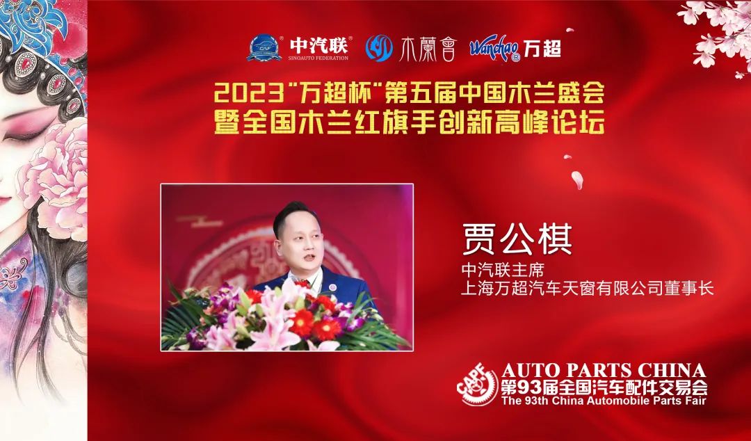 在這個(gè)萬物生長、生機(jī)盎然的春天里,在全國汽車配件交易會(huì)組委會(huì)的支持下,“2023萬超杯中國木蘭盛會(huì)暨全國木蘭紅旗手創(chuàng)新高峰論壇”在美麗的春城昆明如期舉辦。經(jīng)過5年的努力,在社會(huì)各界的支持下,中國木蘭盛會(huì)已經(jīng)凝聚了一批最優(yōu)秀的女性企業(yè)家和創(chuàng)業(yè)者,在此我謹(jǐn)代表主辦單位中汽聯(lián)、木蘭會(huì)、上海萬超汽車天窗有限公司向各位木蘭、各位來賓的蒞臨表示熱烈的歡迎和衷心的感謝!