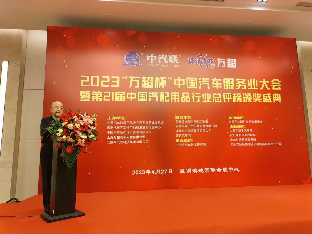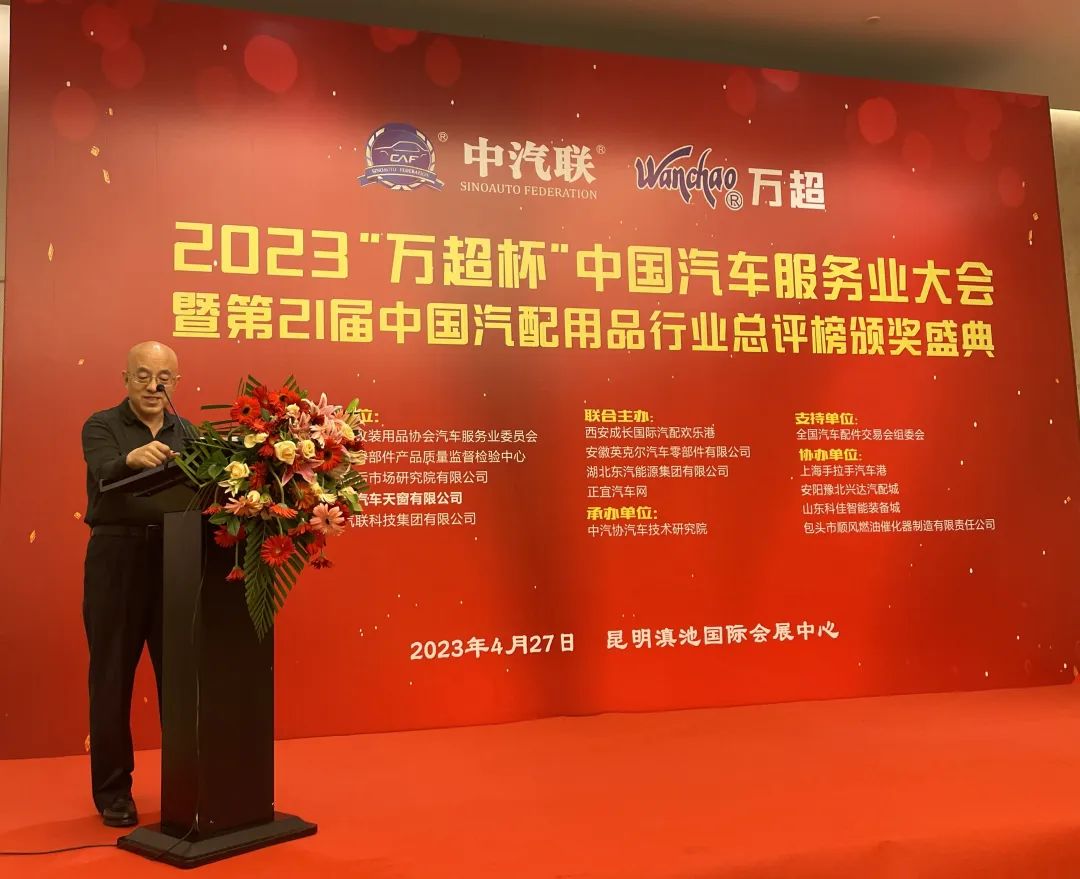 春暖花開,相聚昆明。在第93屆全國汽車配件交易會隆重開幕之際,我們在這里盛大舉行2023“萬超杯”中國汽車服務(wù)業(yè)大會暨第21屆中國汽配用品行業(yè)總評榜頒獎盛典,在此我謹代表中國汽車改裝用品協(xié)會汽車服務(wù)業(yè)委員會及中汽聯(lián)向各位來賓的到來表示熱烈地歡迎和衷心地感謝,也感謝你們對全國汽配會一如既往的關(guān)心和支持。