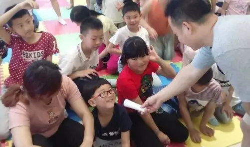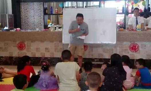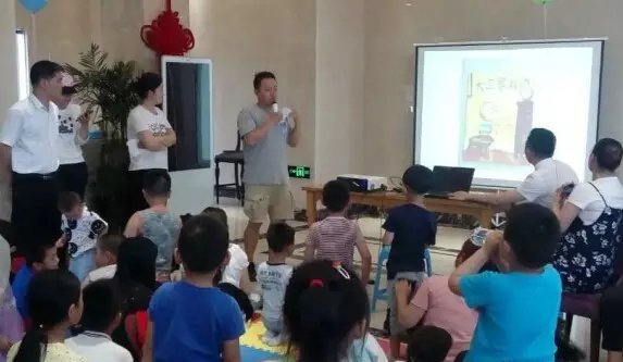 在歡樂的氣氛中,哈哈老爸給孩子們講了“大衛(wèi)惹麻煩”,一個淘氣的美國孩子惹麻煩,在麻煩中學(xué)會懂規(guī)矩,學(xué)會自立、學(xué)會愛的故事。