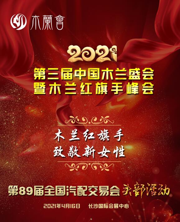 在第89屆全國(guó)汽車配件交易會(huì)于2021年4月16-18日在長(zhǎng)沙國(guó)際會(huì)展中心舉辦期間,以“木蘭心向黨 奮斗新征程”為主題的2021第三屆中國(guó)木蘭盛會(huì)暨木蘭紅旗手創(chuàng)新峰會(huì)將于2021年4月16日在長(zhǎng)沙國(guó)際會(huì)展中心盛大舉行。通過此次盛會(huì)希望廣大木蘭以行動(dòng)建功新時(shí)代,以?shī)^斗創(chuàng)造美好新生活,再譜木蘭新華章。