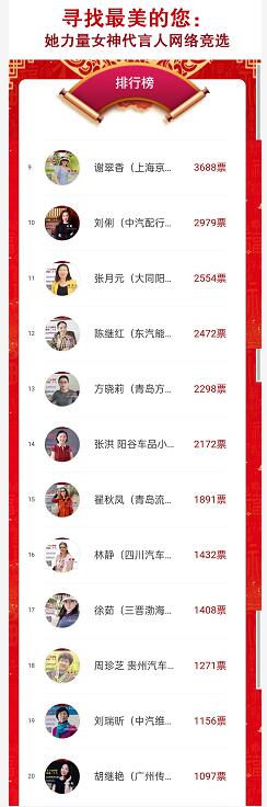 總訪數(shù)超過(guò)276100人次,總投票數(shù)達(dá)到288066票,受到了汽車(chē)行業(yè)企業(yè)家們的廣泛關(guān)注與積極參與,在汽車(chē)行業(yè)掀起了一股木蘭熱潮,紛紛為自己心中的木蘭榜樣投票。