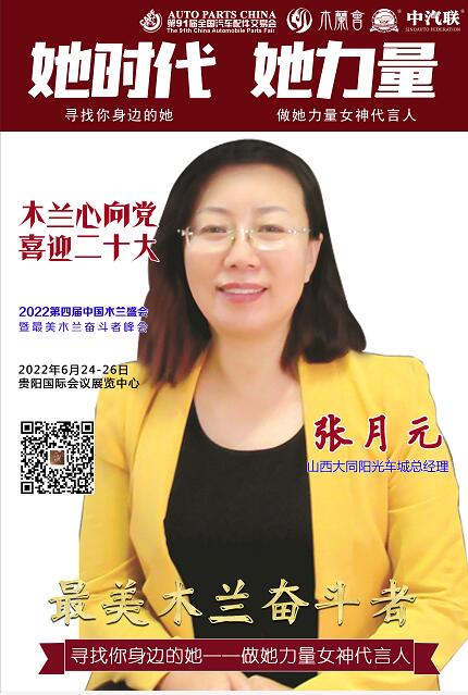 張?jiān)略?/strong> 現(xiàn)擔(dān)任陽(yáng)光集團(tuán)總裁兼陽(yáng)光車(chē)城總經(jīng)理、大同汽車(chē)服務(wù)業(yè)商會(huì)會(huì)長(zhǎng),她為大同汽車(chē)行業(yè)翹楚及領(lǐng)軍人物,她成功開(kāi)發(fā)運(yùn)營(yíng)了大同陽(yáng)光車(chē)城,是中國(guó)汽車(chē)服務(wù)業(yè)領(lǐng)袖企業(yè)家,她是新時(shí)代的木蘭領(lǐng)袖。