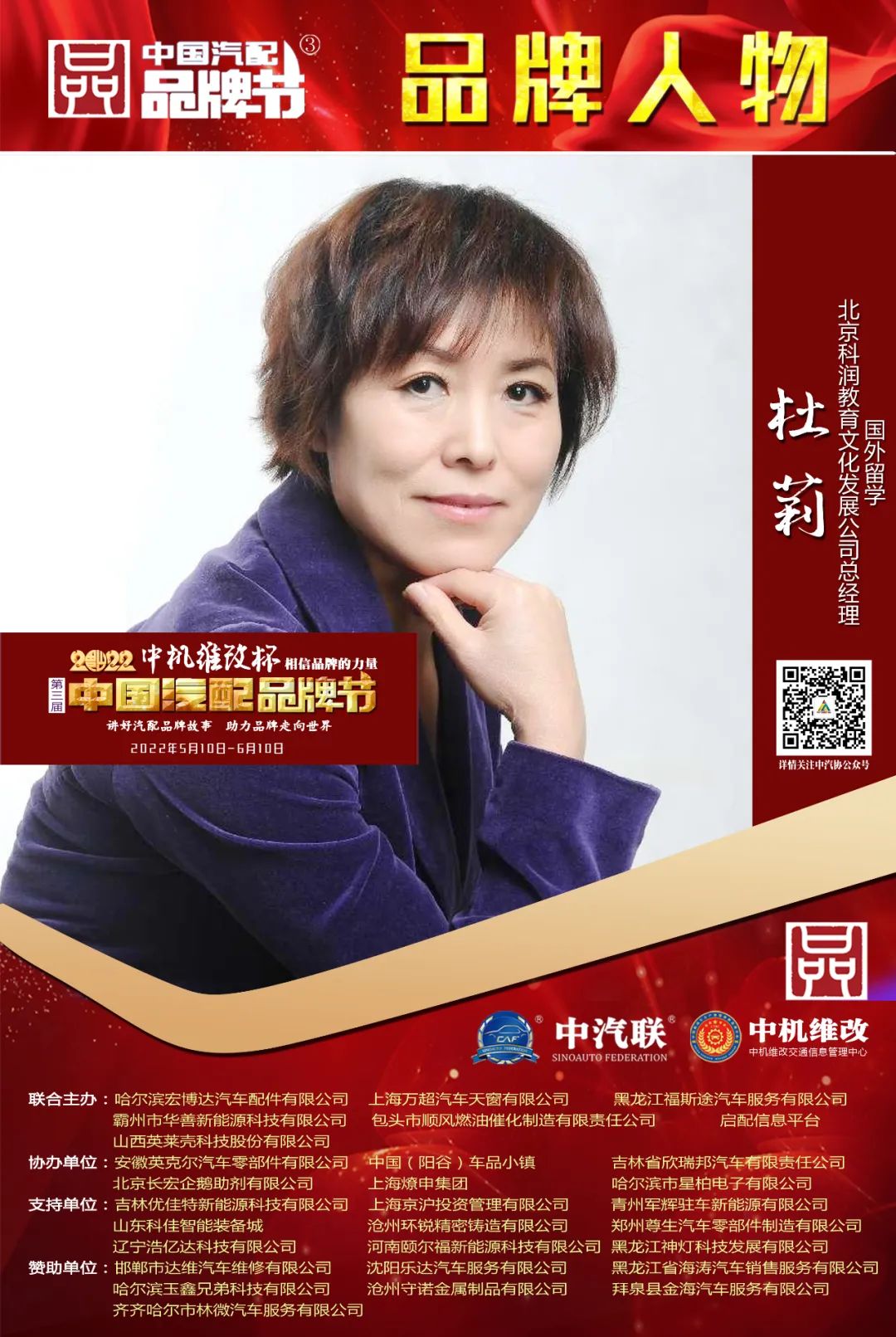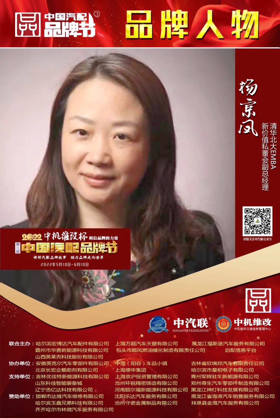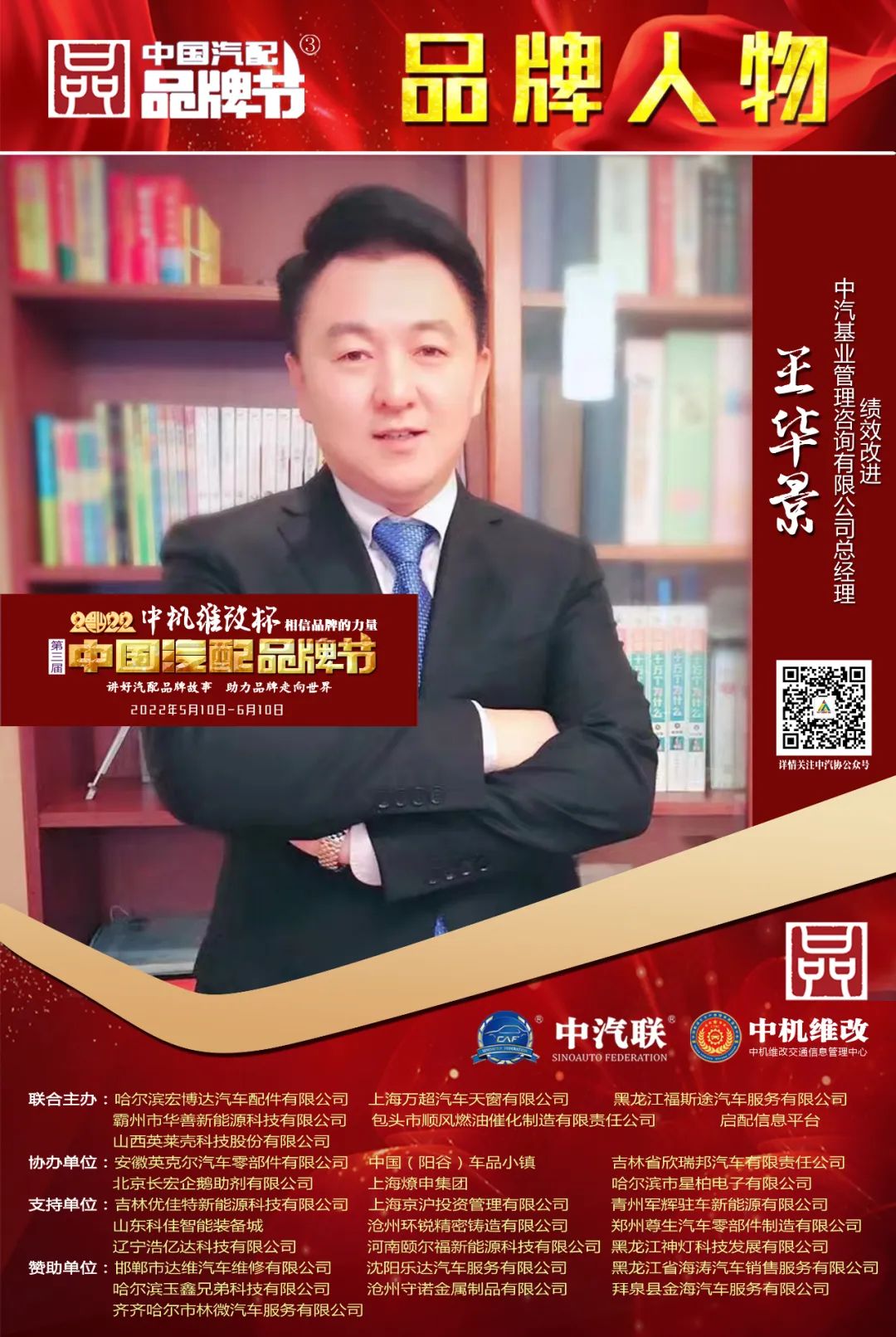 2022中機(jī)維改杯中國汽配品牌節(jié)由中機(jī)維改交通信息管理中心獨(dú)家總冠名,由中汽聯(lián)、中汽配、中機(jī)維改共同主辦;哈爾濱宏博達(dá)汽車配件有限公司、上海萬超汽車天窗有限公司、 黑龍江福斯途汽車服務(wù)有限公司、包頭市順風(fēng)燃油催化器制造有限責(zé)任公司、霸州市華善新能源科技有限公司、啟配信息平臺、山西英萊殼科技股份有限公司聯(lián)合主辦;由中國(陽谷)車品小鎮(zhèn)、華勝集團(tuán)、上海燎申集團(tuán)、吉林欣瑞邦汽車有限責(zé)任公司、安徽英克爾汽車零部件有限公司、北京長宏企鵝助劑有限公司、哈爾濱市星柏電子有限公司、廣州五加五汽配股份有限公司友情協(xié)辦;由吉林優(yōu)佳特新能源科技有限公司、上海京滬投資管理有限公司、青州軍輝駐車新能源有限公司、山東科佳智能裝備城、鄭州尊生汽車零部件制造有限公司、滄州環(huán)銳精密鑄造有限公司、遼寧浩億達(dá)科技有限公司、河南頤爾福新能源科技有限公司、黑龍江神燈科技發(fā)展有限公司、山西三晉國際汽配城特別支持;邯鄲市達(dá)維汽車維修有限公司、沈陽樂達(dá)汽車服務(wù)有限公司、黑龍江省海濤汽車銷售服務(wù)有限公司、哈爾濱玉鑫兄弟科技有限公司、滄州守諾金屬制品有限公司、拜泉縣金海汽車服務(wù)有限公司、齊齊哈爾市林微汽車服務(wù)有限公司友情贊助;由德州市鑫雙恒汽車服務(wù)有限公司、浚縣李春亮汽車維修門市部 、滄州春立汽車服務(wù)有限公司、臨沂富裕汽車服務(wù)有限公司、綏中縣宏騰汽車服務(wù)有限公司、榆樹市鑫運(yùn)程汽車服務(wù)限公司、綏中縣鑫發(fā)汽車服務(wù)有限公司、臨清市浩航汽車服務(wù)有限公司、中能國業(yè)(北京)科技有限公司特別祝賀。