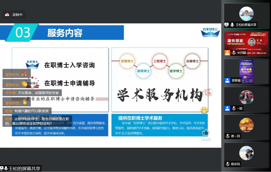北京聚才港科技有限公司總經(jīng)理王松做了精彩分享。聚才港成立于2017年10月,是專業(yè)的教育咨詢服務(wù)機(jī)構(gòu),提供國內(nèi)正規(guī)在職博士申請輔導(dǎo)和學(xué)術(shù)指導(dǎo)服務(wù),涵蓋專業(yè)包括:工程博士、經(jīng)濟(jì)金融、管理法律、教育、臨床醫(yī)學(xué)等。擁有多名經(jīng)驗豐富的輔導(dǎo)專家,同時聘請了多位國內(nèi)頂尖“雙一流”名校的教授、副教授、博導(dǎo)和博士作為指導(dǎo)教師,提供專業(yè)化的“在職博士”申請輔導(dǎo)咨詢和學(xué)術(shù)指導(dǎo)服務(wù)。截止2021年,公司累計服務(wù)人數(shù)超過2100人,輔導(dǎo)了諸多申請人順利拿到名校在職博士錄取通知書,獲得了學(xué)員的廣泛認(rèn)同和肯定。