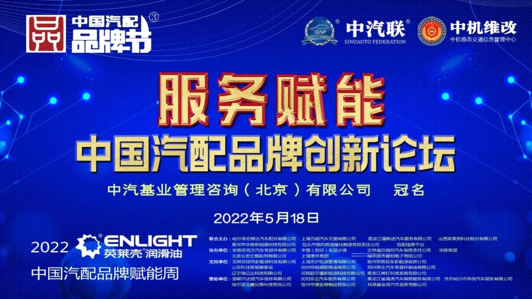 2022中國汽配品牌賦能周由山西英萊殼科技股份有限公司獨(dú)家冠名,在線上舉辦的賦能周第三場活動“服務(wù)賦能·2022中國汽配品牌創(chuàng)新論壇”由中汽基業(yè)管理咨詢(北京)有限公司冠名特約播出,這是2022中機(jī)維改杯第三屆中國汽配品牌節(jié)系列活動的第六場活動。