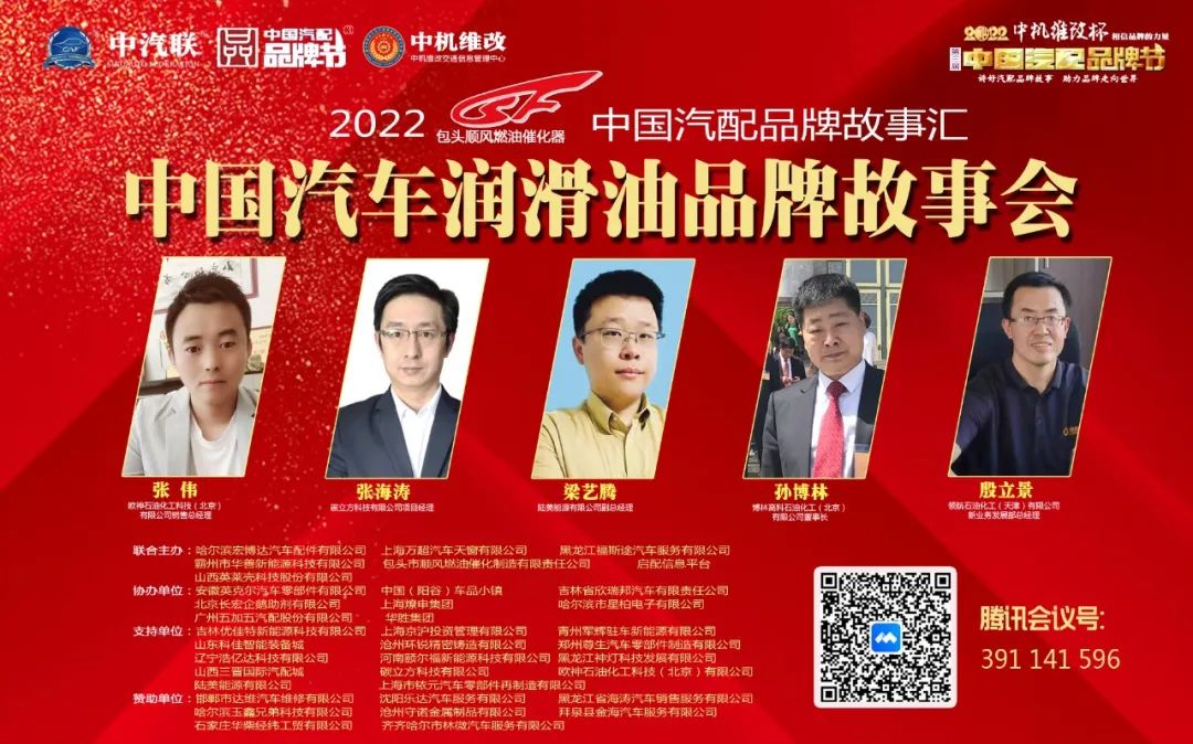 2022年5月23日,“2022 順風(fēng)燃油催化杯 中國(guó)汽配品牌故事會(huì)”的第一場(chǎng)活動(dòng),由 山西英萊殼科技股份有限公司 特約冠名播出的“2022中國(guó)汽車潤(rùn)滑油品牌故事會(huì)在線上成功召開。 歐神石油化工科技(北京)有限公司銷售總經(jīng)理張偉,碳立方科技有限公司項(xiàng)目經(jīng)理張海濤,陸美能源有限公司副總經(jīng)理梁藝騰,博林高科石油化工(北京)有限公司董事長(zhǎng)孫博林,領(lǐng)航石油化工(天津)有限公司集團(tuán)新業(yè)務(wù)發(fā)展部總經(jīng)理殷立景 等五位潤(rùn)滑油界的嘉賓做了精彩分享,引起了潤(rùn)滑油從業(yè)人員的廣泛關(guān)注,點(diǎn)贊達(dá)數(shù)量達(dá)到300000個(gè)。 2022中國(guó)汽車潤(rùn)滑油品牌故事會(huì)由中汽聯(lián)秘書長(zhǎng)、中國(guó)汽配品牌節(jié)副主席兼秘書長(zhǎng)郭霽嘉主持。 |