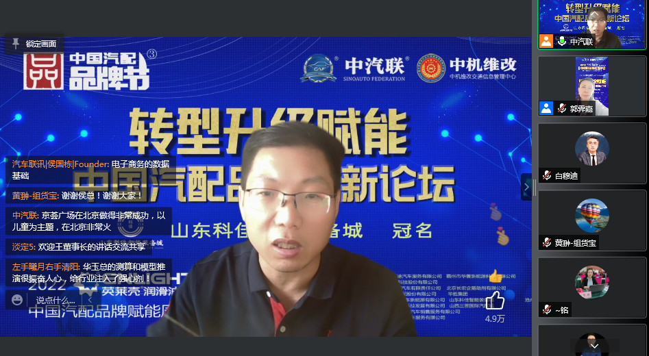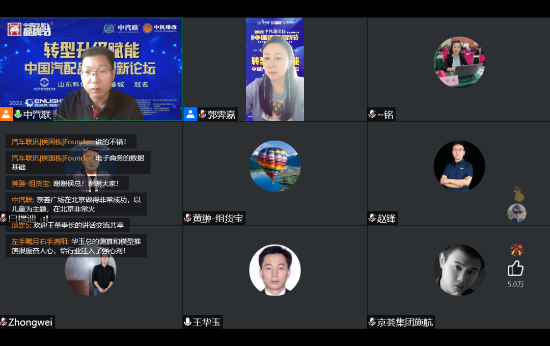 2022年5月20日,“2022 英萊殼杯 中國汽配品牌賦能周”的第五場活動(dòng),由 山東科佳智能裝備城 特約冠名播出的“轉(zhuǎn)型升級(jí)賦能 · 2022中國汽配品牌創(chuàng)新論壇”在線上成功舉行。 北京酷車小鎮(zhèn)戰(zhàn)略發(fā)展總經(jīng)理趙鋒 、量子數(shù)聚(北京)科技有限公司總裁宋仲偉、月映萬川商業(yè)運(yùn)營機(jī)構(gòu)創(chuàng)始人白穆迪、組貨寶創(chuàng)始人兼CEO黃翀、伏兔科技有限公司董事長王華玉、京薈文化集團(tuán)運(yùn)營總監(jiān)施航 等六位大咖做了精彩分享,得到了眾多專業(yè)市場老板的關(guān)注。 轉(zhuǎn)型升級(jí)賦能論壇由中汽聯(lián)執(zhí)行會(huì)長、中汽協(xié)汽車技術(shù)研究院院長喬永鋒主持 |