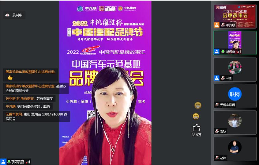 2022年5月27日,“2022 順風(fēng)燃油催化器杯 中國汽配品牌故事匯”的第五場活動,由 中汽聯(lián)(臨港)全球汽車零部件創(chuàng)新中心 特約冠名播出的“2022中國汽車示范基地品牌故事會在線上成功召開,中國南山·無錫車聯(lián)網(wǎng)小鎮(zhèn)總經(jīng)理甄鴻波、山東科佳智能裝備城銷售總監(jiān)許世婧、包頭瑞盛國際汽配城總經(jīng)理冒玉龍、廊坊汽配城總經(jīng)理關(guān)亞濤、中國汽車流通協(xié)會有形市場分會會長蘇暉、中汽聯(lián)汽車區(qū)塊鏈產(chǎn)業(yè)創(chuàng)新中心主任戴浦臣 等六位嘉賓出席品牌故事會并做了精彩分享,引起了汽車行業(yè),尤其是專業(yè)市場及產(chǎn)業(yè)園區(qū)的廣泛關(guān)注,點贊數(shù)量達到390000個。示范基地品牌故事會由中汽聯(lián)秘書長、中國汽配品牌節(jié)副主席兼秘書長郭霽嘉主持。