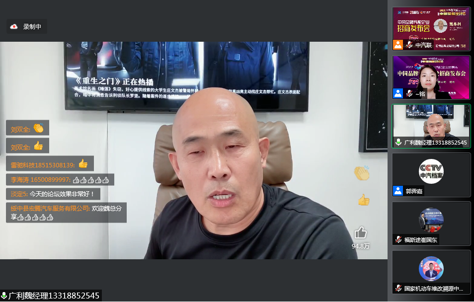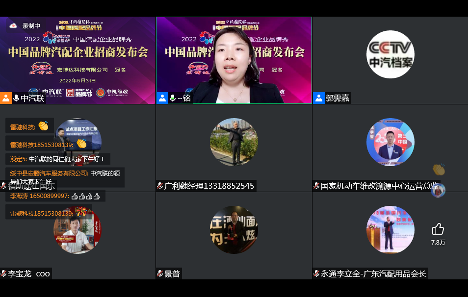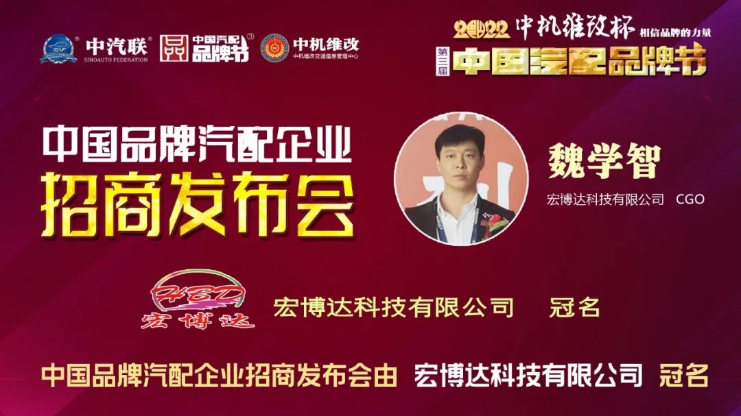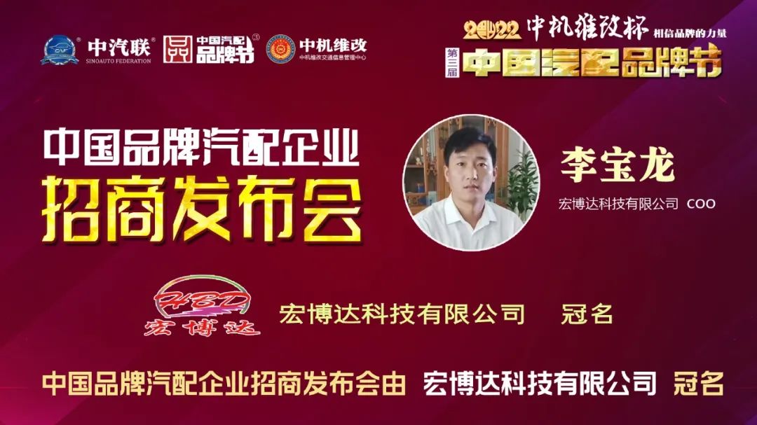 2022年5月31日,“2022 福斯途杯 中國汽配企業(yè)品牌秀”的第二場活動,由 宏博達科技有限公司 特約冠名播出的2022中國品牌汽配企業(yè)招商發(fā)布會在線上成功召開,宏博達科技有限公司COO李寶龍 、宏博達科技有限公司 CGO魏學(xué)智、黑龍江福斯途汽車服務(wù)有限公司總經(jīng)理崔國東 、廣州廣利汽車維修服務(wù)有限公司董事長魏本利等嘉賓出席汽配企業(yè)品牌秀并做了精彩分享,引起了行業(yè)的廣泛關(guān)注,點贊數(shù)量達到102萬個。2022中國品牌汽配企業(yè)招商發(fā)布會由中汽聯(lián)執(zhí)行秘書長、中國汽配品牌節(jié)常務(wù)秘書長徐銘主持。