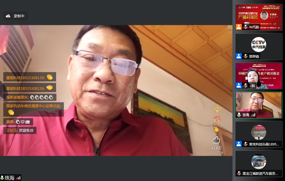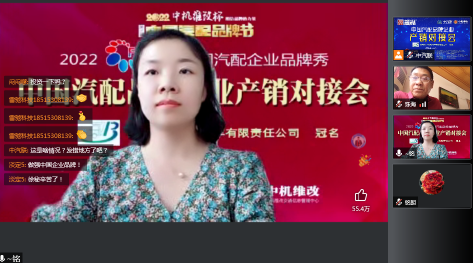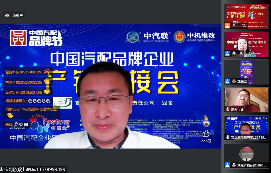 2022年6月1日,“2022 福斯途杯 中國(guó)汽配企業(yè)品牌秀”的第三場(chǎng)活動(dòng),由 吉林省欣瑞邦汽車有限責(zé)任公司 特約冠名播出的2022中國(guó)汽配品牌企業(yè)產(chǎn)銷對(duì)接會(huì)在線上成功召開,吉林省欣瑞邦汽車有限責(zé)任公司董事長(zhǎng)王懷寶、商丘市珂辰汽車零配件有限公司總經(jīng)理朱新海、山東萊克科技有限公司品宣部長(zhǎng)孫晶、北京可安可智能科技有限公司副總裁曹玉寶等嘉賓出席汽配企業(yè)品牌秀并做了精彩分享,引起了行業(yè)的廣泛關(guān)注,點(diǎn)贊數(shù)量達(dá)到56萬(wàn)個(gè)。2022中國(guó)汽配品牌企業(yè)產(chǎn)銷對(duì)接會(huì)由中汽聯(lián)執(zhí)行秘書長(zhǎng)、中國(guó)汽配品牌節(jié)常務(wù)秘書長(zhǎng)徐銘主持。