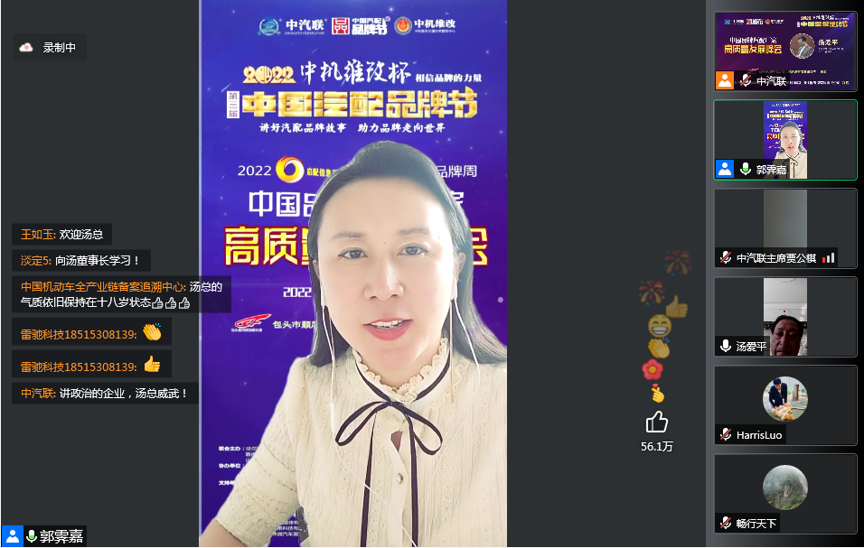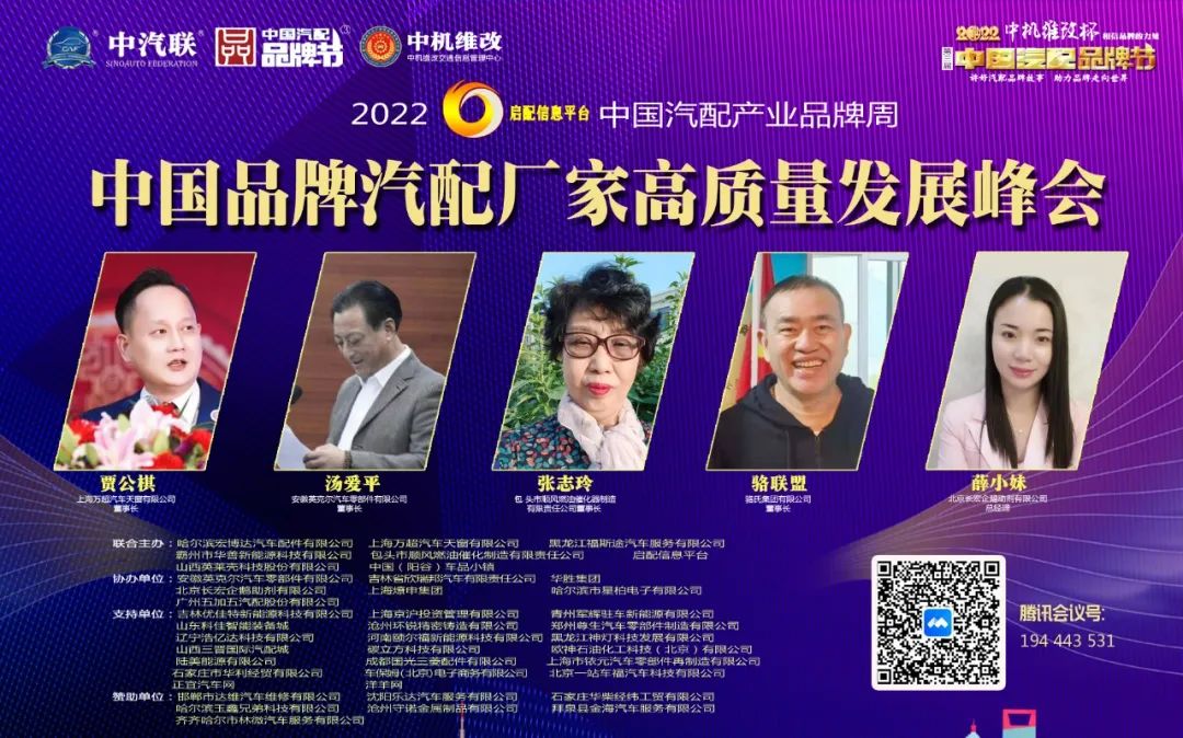 2022年6月6日,“2022 啟配信息平臺杯 中國汽配產(chǎn)業(yè)品牌周”的第一場活動,由 包頭市順風(fēng)燃油催化器制造有限責(zé)任公司 特約冠名播出的2022中國品牌汽配廠家高質(zhì)量發(fā)展峰會在線上成功舉行,上海萬超汽車天窗有限公司董事長賈公棋、安徽英克爾汽車零部件有限公司董事長湯愛平、包頭市順風(fēng)燃油催化器制造有限公司董事長張志玲、駱氏集團(tuán)有限公司董事長駱聯(lián)盟、北京長宏企鵝助劑有限公司總經(jīng)理薛小妹 等大國工匠出席汽配產(chǎn)業(yè)品牌周并做了精彩分享,引起了行業(yè)的廣泛關(guān)注,點贊數(shù)量達(dá)到71萬個。