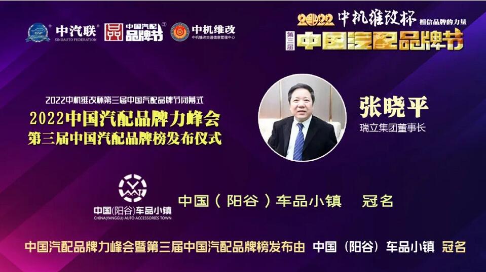浙江省汽摩配商會會長、瑞立集團董事長張曉平 因臨時接待溫州市領(lǐng)導(dǎo)到瑞立集團考察,無法出席2022中國汽配品牌力峰會做分享,張董事長特委托中汽聯(lián)執(zhí)行會長喬永鋒轉(zhuǎn)達了他對中國汽配品牌節(jié)的支持和對大家的問候。瑞立集團在張董事長的帶領(lǐng)下,始終堅持以汽車零部件為主業(yè),適度多元經(jīng)營,促進瑞立二、三產(chǎn)業(yè)的全面協(xié)調(diào)發(fā)展,不斷做強做大,規(guī)劃至2025年汽車零部件板塊產(chǎn)銷達200億元,旗下商用車后市場連鎖平臺——新瑞立汽配連鎖實現(xiàn)上市。