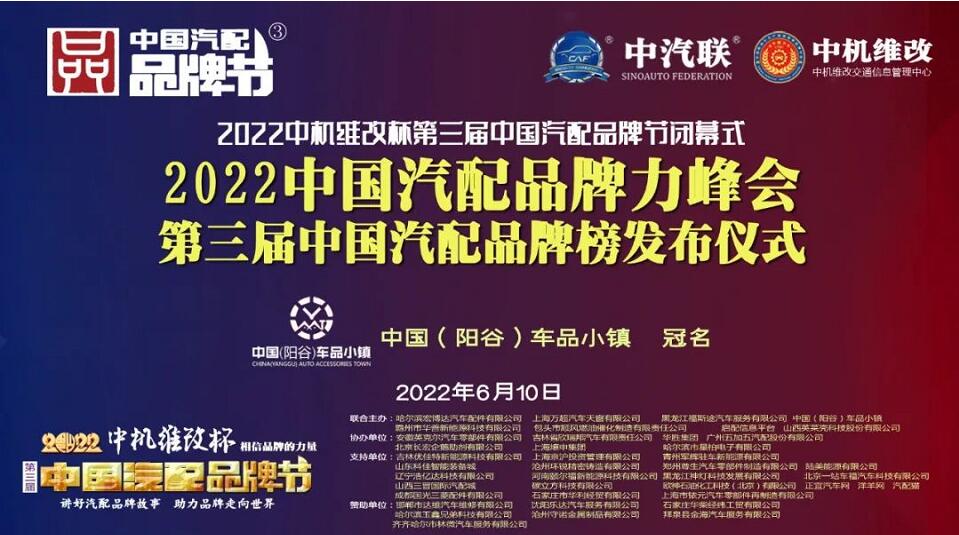 2022中機維改杯中國汽配品牌節(jié)由中機維改交通信息管理中心獨家總冠名,由中汽聯(lián)、中汽配、中機維改 共同主辦;哈爾濱宏博達汽車配件有限公司、上海萬超汽車天窗有限公司、中國(陽谷)車品小鎮(zhèn)、黑龍江福斯途汽車服務(wù)有限公司、包頭市順風(fēng)燃油催化器制造有限責(zé)任公司、霸州市華善新能源科技有限公司、啟配信息平臺、山西英萊殼科技股份有限公司 聯(lián)合主辦;由華勝集團、上海燎申集團、吉林欣瑞邦汽車有限責(zé)任公司、安徽英克爾汽車零部件有限公司、北京長宏企鵝助劑有限公司、哈爾濱市星柏電子有限公司、廣州五加五汽配股份有限公司 友情協(xié)辦;由吉林優(yōu)佳特新能源科技有限公司、上海京滬投資管理有限公司、青州軍輝駐車新能源有限公司、山東科佳智能裝備城、鄭州尊生汽車零部件制造有限公、滄州環(huán)銳精密鑄造有限公司、遼寧浩億達科技有限公司、河南頤爾福新能源科技有限公司、黑龍江神燈科技發(fā)展有限公司、山西三晉國際汽配城、歐神石油化工科技(北京)有限公司、碳立方科技有限公司、陸美能源有限公司、上海市銥元汽車零部件再制造有限公司、成都國光三菱配件有限公司、石家莊市華利經(jīng)貿(mào)有限公司、車保姆(北京)電子商務(wù)有限公司、北京一站車福汽車科技有限公司、正宜汽車網(wǎng)、洋羊網(wǎng)、汽配貓 特別支持;邯鄲市達維汽車維修有限公司、沈陽樂達汽車服務(wù)有限公司、哈爾濱玉鑫兄弟科技有限公司、滄州守諾金屬制品有限公司、拜泉縣金海汽車服務(wù)有限公司、齊齊哈爾市林微汽車服務(wù)有限公司、石家莊華柴經(jīng)緯工貿(mào)有限公司 友情贊助;由德州市鑫雙恒汽車服務(wù)有限公司、浚縣李春亮汽車維修門市部 、滄州春立汽車服務(wù)有限公司、臨沂富裕汽車服務(wù)有限公司、綏中縣宏騰汽車服務(wù)有限公司、榆樹市鑫運程汽車服務(wù)限公司、綏中縣鑫發(fā)汽車服務(wù)有限公司、臨清市浩航汽車服務(wù)有限公司、中能國業(yè)(北京)科技有限公司 特別祝賀。